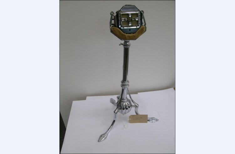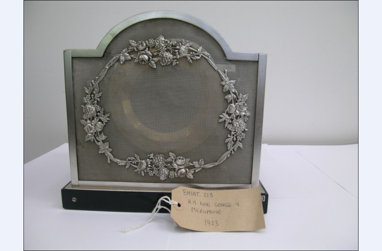 The final royal microphone in this part of the collection is the HM Queen Mary microphone which is a 1925 Marconi-Reisz carbon microphone.