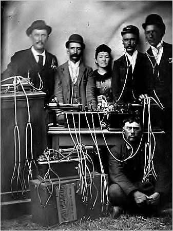 We stumbled across this photo the other day  but we don’t know much about it. It’s apparently a group of listeners trying out the new fangled phonograph on headphones, treating it like a sort of communal ipod. We think this was probably a way of promoting the new invention to a wider audience but we are not sure. So please, if you know anything more about these people and what they are up to please get in touch.