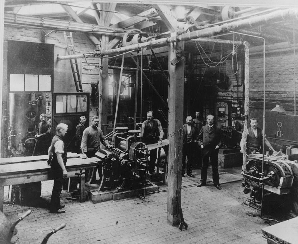 Joe Sanders received his manufacturing presses in the autumn of 1898 but the factory that was being built in Hanover to house them was not ready. To meet the demand for discs in the run up to Christmas of that year he erected a huge tent next door to where the manufacturing plant was being built and produced the entire European supply of discs from under a big top. Even with such constraints he was able to deliver discs within a month of the recordings being sent from London which is a quite remarkable achievement. The proper factory was completed in 1899 and you can see the presses in action within it, here: