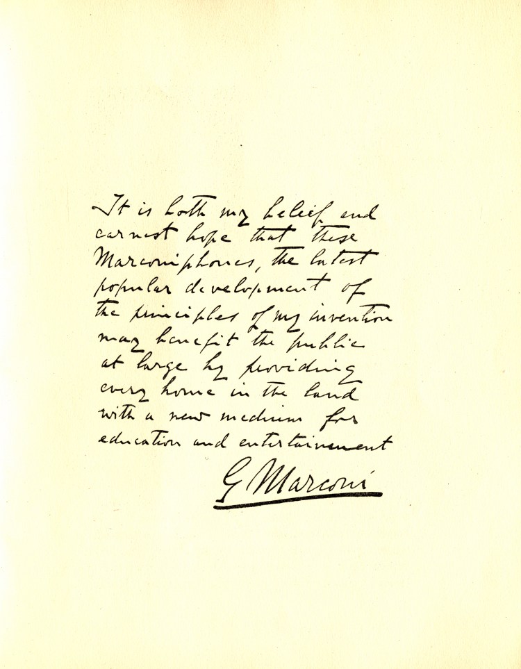 The Marconiphone was a brand of radios that were originally developed by the Marconi Company in the UK from 1923. The brand was sold to the Gramophone Company in 1929 as that company diversified into wireless technology. The Gramophone Company became EMI in 1931 and continued to make Marconiphone Radios until 1956.
