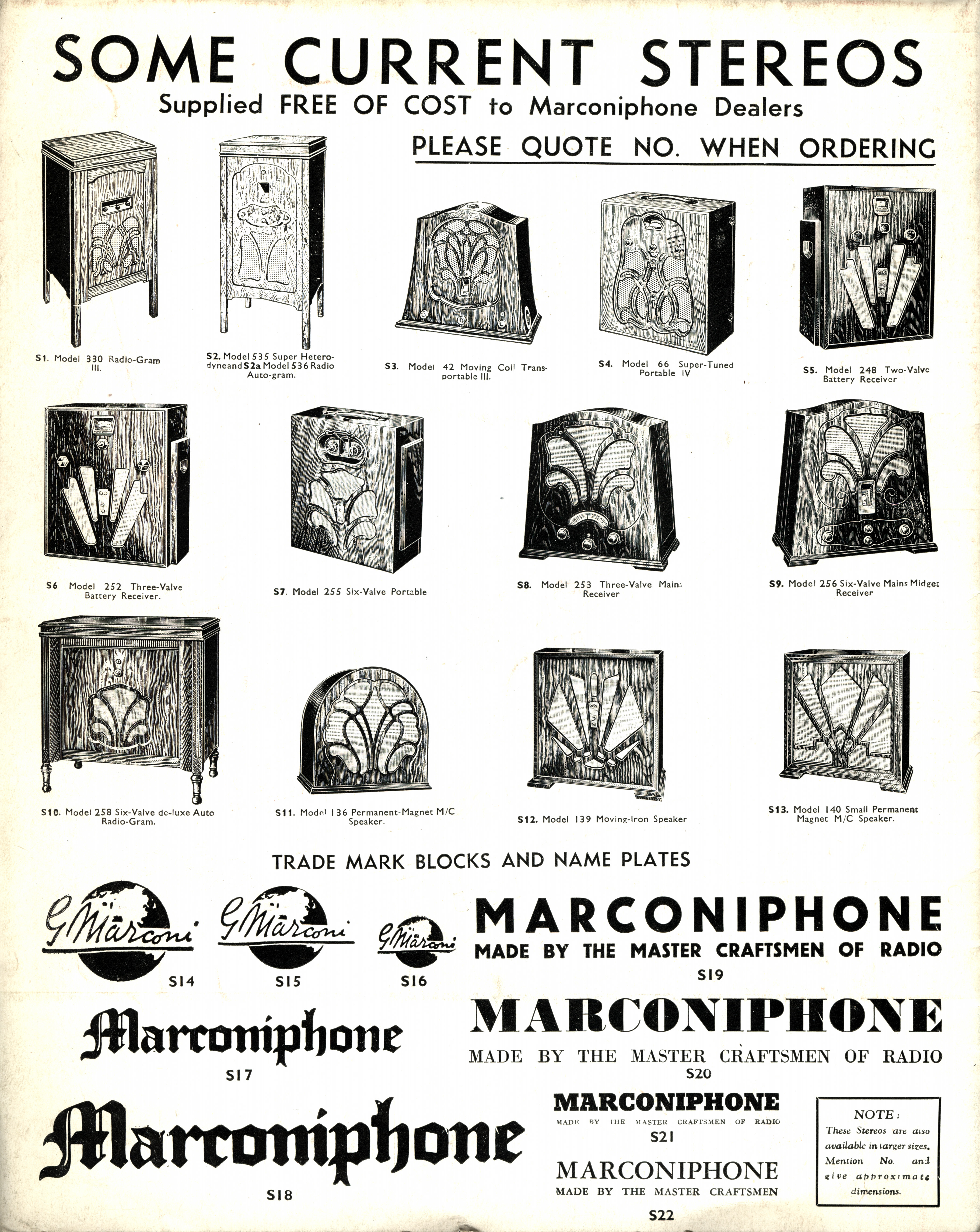 This is a trade advertisement ecouraging dealers to stock Marconiphones from around 1930: