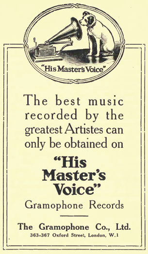 Of the artists exclusively engaged to make the famous “His Master’s Voice” records for the company we shall speak later, and in the chapter devoted to the “Talking Machine as a Teacher ” we shall have something to say of the firm’s efforts in that direction.”