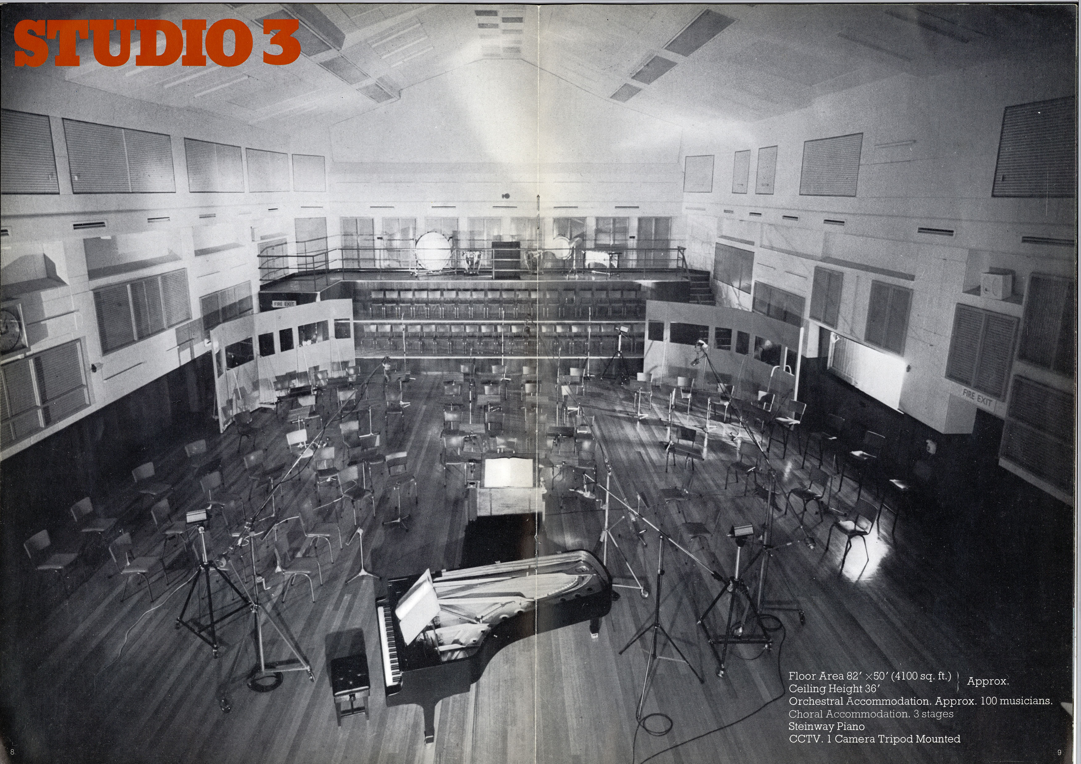 Studio 1 (at Decca ) was used for general “pop” recordings, using mostly one mic, a STC 4021 “Ball and Biscuit” omni mic on a boom which was hinged on the wall. Studio 3 was used for smaller orchestral jobs ( e.g. Mantovani) but classical orchestra work was mostly at Kingsway Hall.