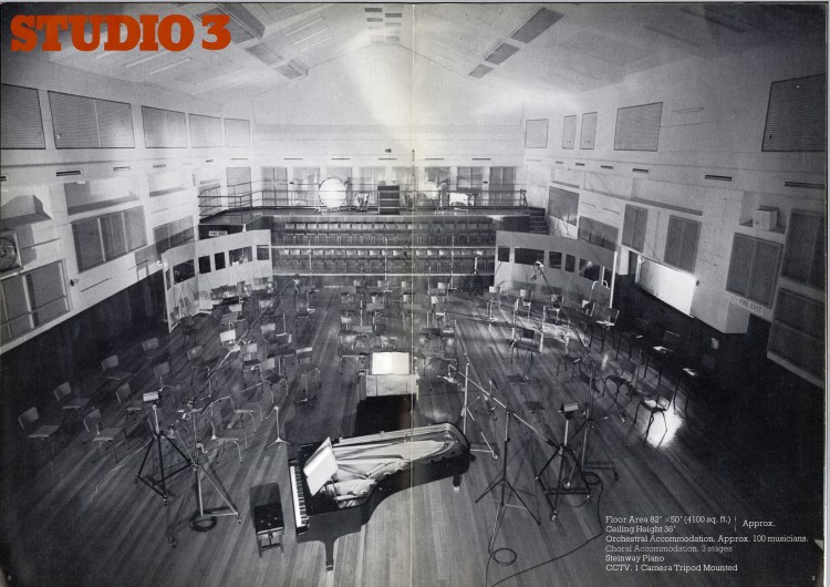 But there was another recording monster on the block in London in the 1960’s. Decca Studios at Broadhurst Gardens was the home of many great recordings and had the equipment and a team of engineers to rival The Beatles Studio. Take a look at this picture of Decca Studio 3 which was forwarded by a former Decca engineer “to prove Abbey Road No.1 (its rival for recording orchestra’s) was nothing special”
