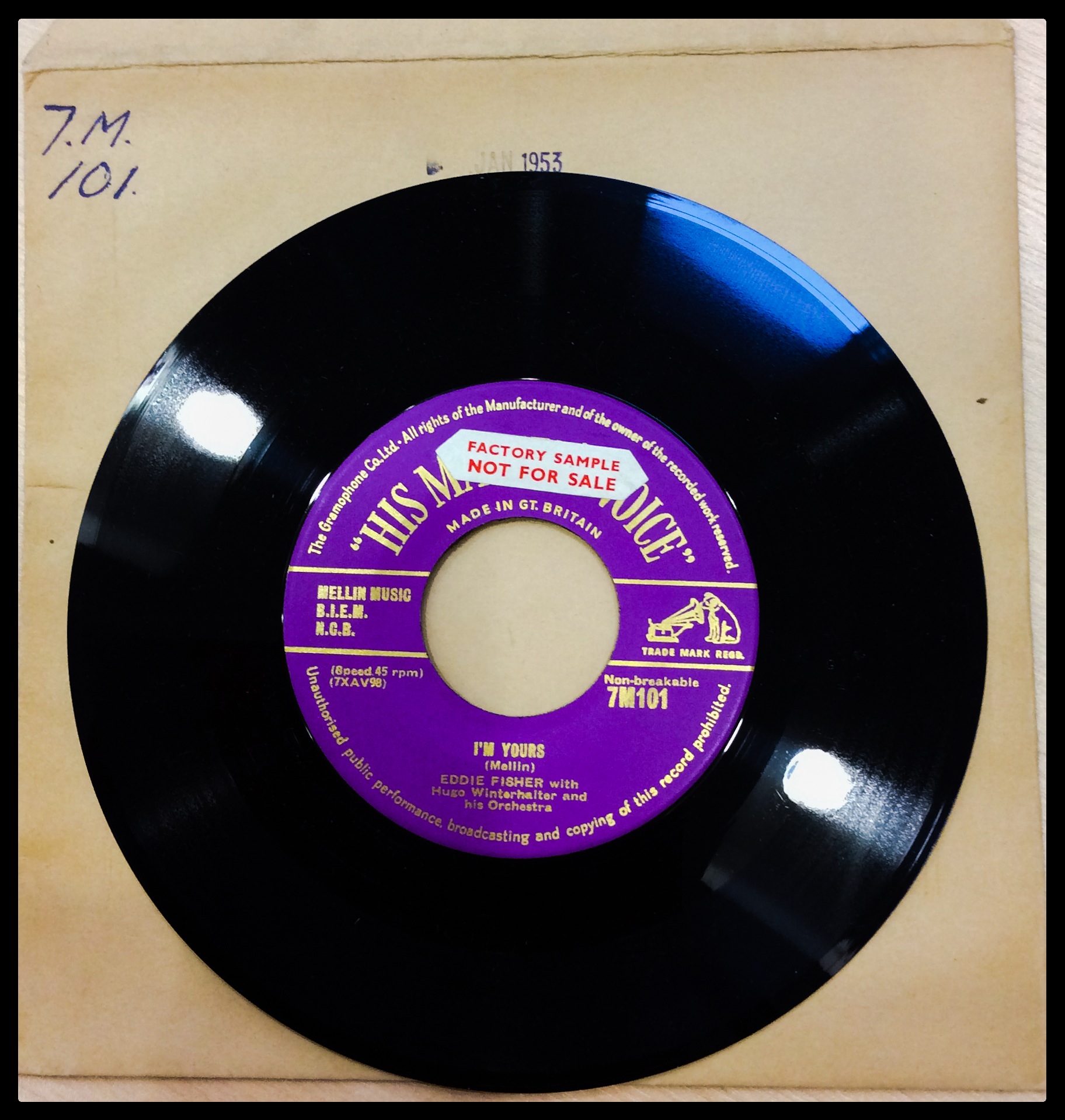 Have you ever wondered when the vinyl era started in the UK? The hound has come across some very exciting records from the EMI Archives relating to the start of vinyl. Here are the very first vinyl 45’s to be pressed by EMI.