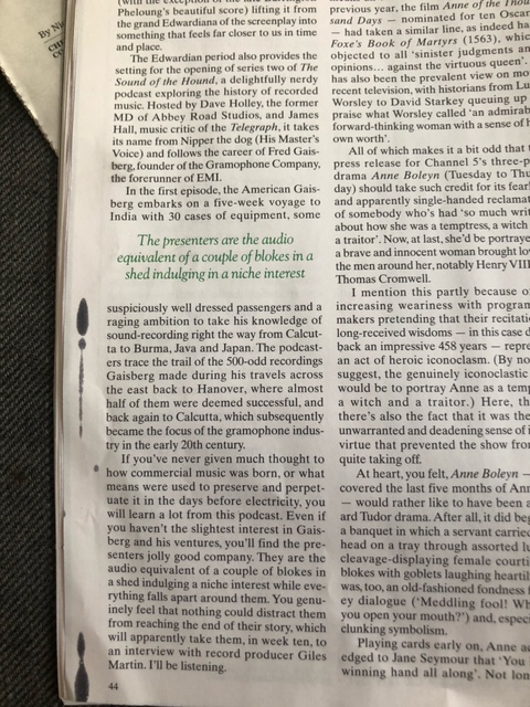 I was delighted to open the latest edition of The Spectator to find that Daisy Dunn had chosen to review an episode of The Sound Of The Hound podcast.