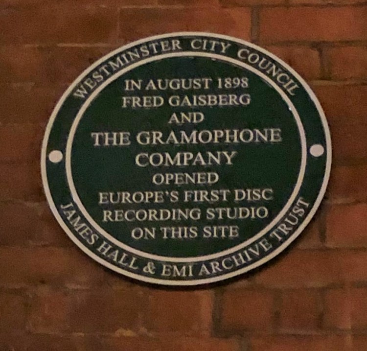 Fred’s back! And he’s got a plaque! The first episode of Series Two of The Sound of the Hound covers the unveiling of a commemorative plaque on the wall of Europe’s first recording studio, opened by Fred Gaisberg in Covent Garden in 1898. The unveiling of the plaque, which is part of the Westminster Council Green Plaque scheme, followed a campaign by Sound of the Hound co-presenter James Hall.