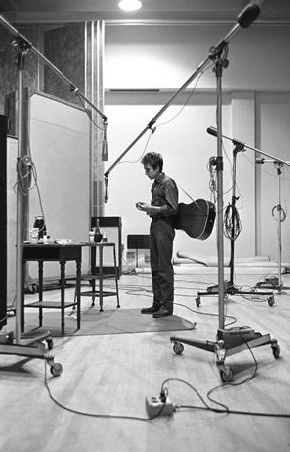 Seventy four years after Edison set up – and Fred Gaisberg worked for – the company that became Columbia Records a young American artist was working at one of the company’s recording studios; Columbia Studio A on 799 Seventh Avenue near 52nd Street in New York City. He was making a record that would become one of the landmark recordings. He was Bob Dylan – and the sessions being interrupted for this publicity shot – were The Times They Are A Changing Bob Dylan was seventy this week. Happy Birthday, Bob, from SoundOfTheHound.